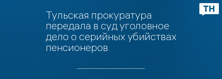 Тульская прокуратура передала в суд уголовное дело о серийных убийствах пенсионеров