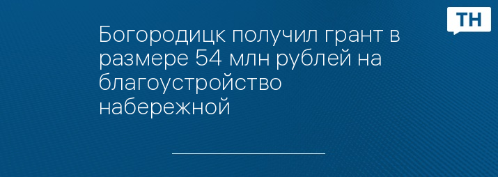 Богородицк получил грант в размере 54 млн рублей на благоустройство набережной