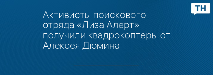 Активисты поискового отряда «Лиза Алерт» получили квадрокоптеры от Алексея Дюмина