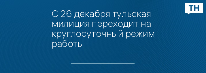 С 26 декабря тульская милиция переходит на круглосуточный режим работы
