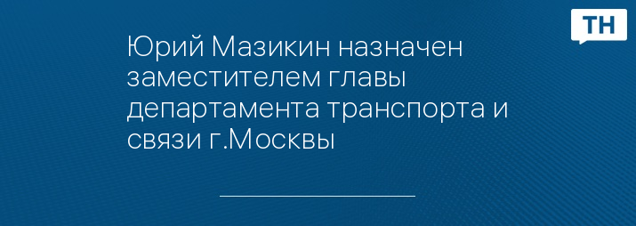 Юрий Мазикин назначен заместителем главы департамента транспорта и связи г.Москвы