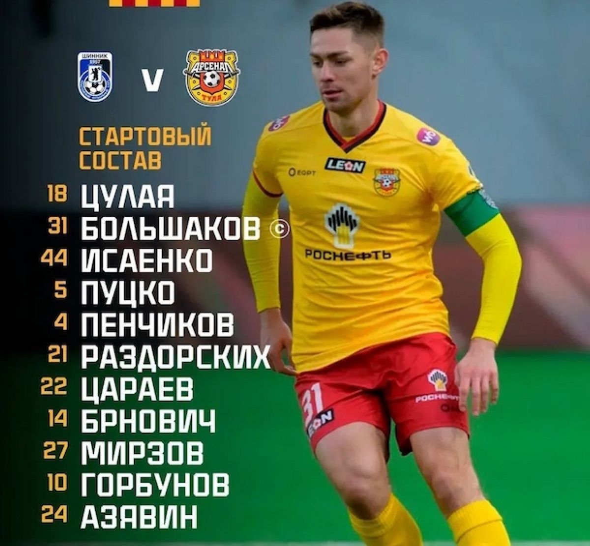 иquot;Арсеналиquot; из Тулы начал матч 29-го тура против иquot;Шинникаиquot; в Ярославле