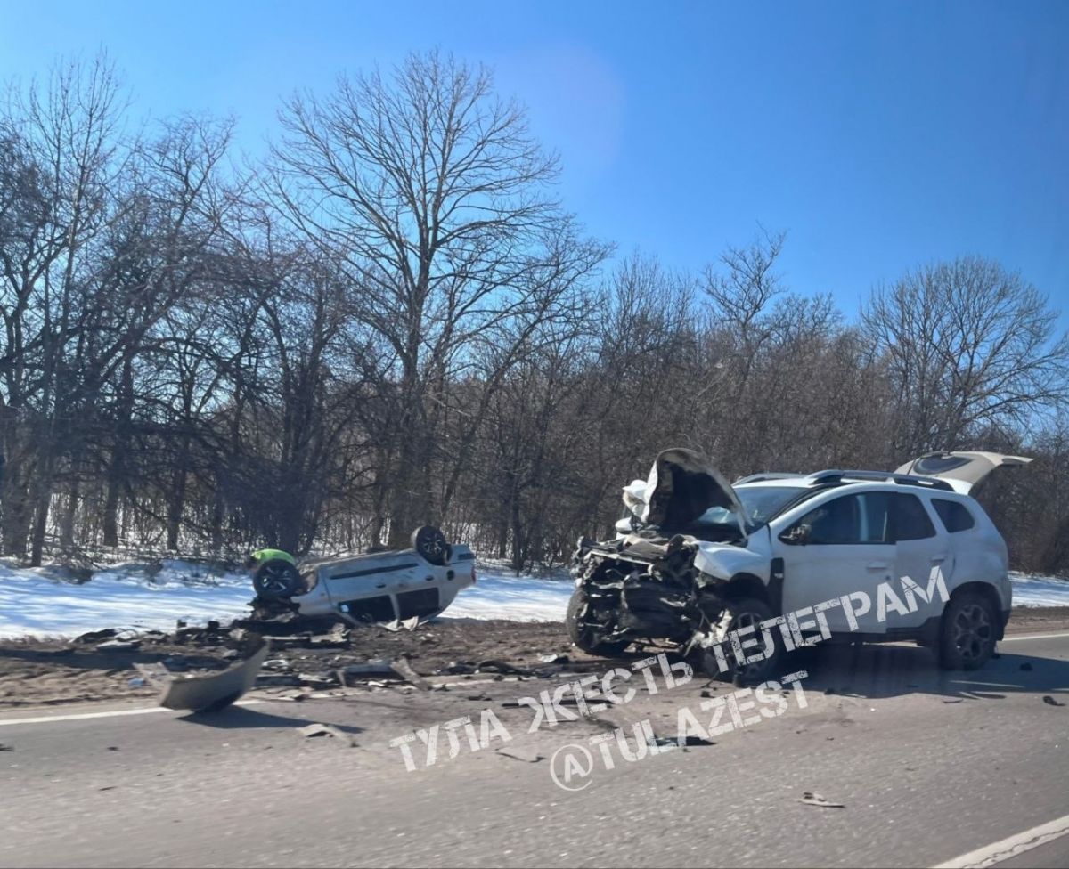 В Тепло-Огаревском районе серьезное ДТП, один автомобиль перевернулся в кювет