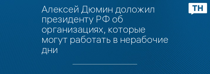 Алексей Дюмин доложил президенту РФ об организациях, которые могут работать в нерабочие дни