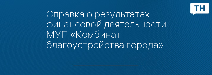 Справка о результатах финансовой деятельности МУП «Комбинат благоустройства города»