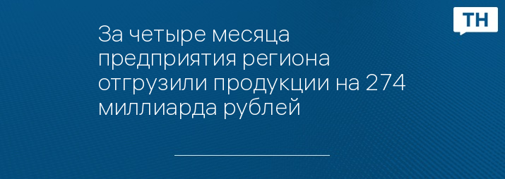 За четыре месяца предприятия региона отгрузили продукции на 274 миллиарда рублей