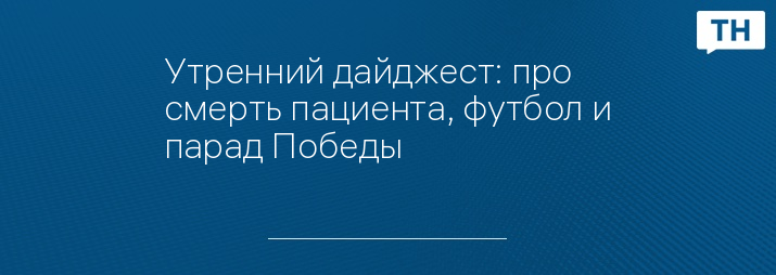 Утренний дайджест: про смерть пациента, футбол и парад Победы