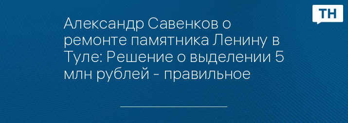 Александр Савенков о ремонте памятника Ленину в Туле: Решение о выделении 5 млн рублей - правильное