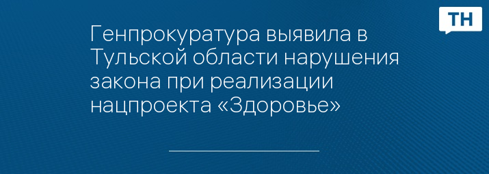 Генпрокуратура выявила в Тульской области нарушения закона при реализации нацпроекта «Здоровье»