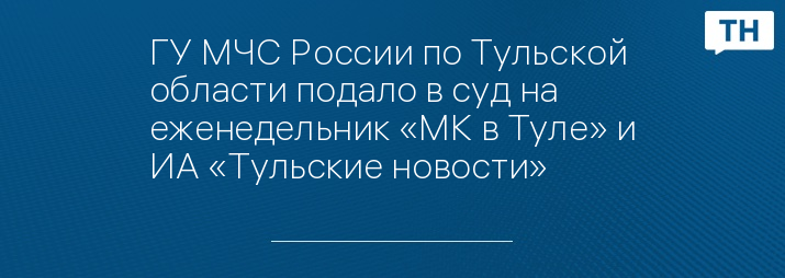 ГУ МЧС России по Тульской области подало в суд на еженедельник «МК в Туле» и ИА «Тульские новости»