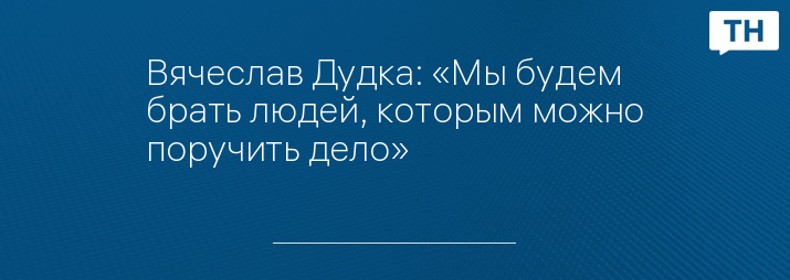 Вячеслав Дудка: «Мы будем брать людей, которым можно поручить дело»