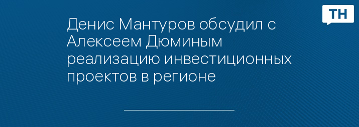 Денис Мантуров обсудил с Алексеем Дюминым реализацию инвестиционных проектов в регионе