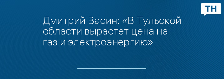 Дмитрий Васин: «В Тульской области вырастет цена на газ и электроэнергию»