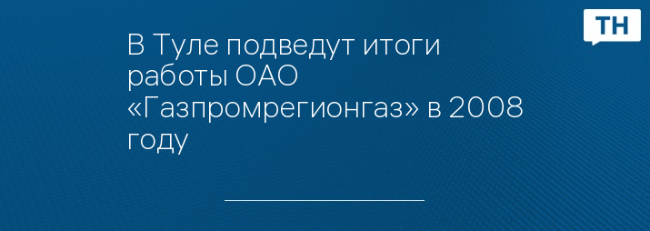 В Туле подведут итоги работы ОАО «Газпромрегионгаз» в 2008 году