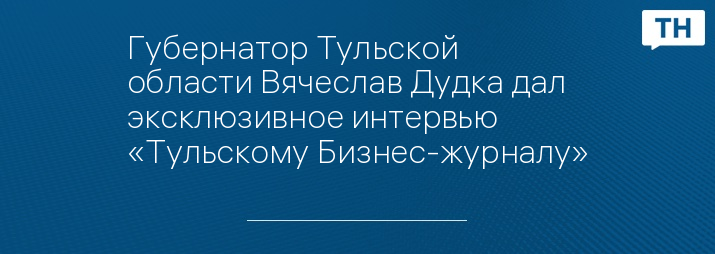 Губернатор Тульской области Вячеслав Дудка дал эксклюзивное интервью «Тульскому Бизнес-журналу»
