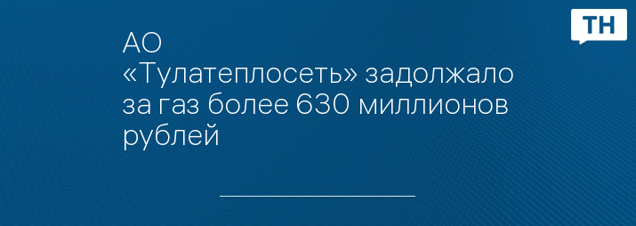 АО «Тулатеплосеть» задолжало за газ более 630 миллионов рублей