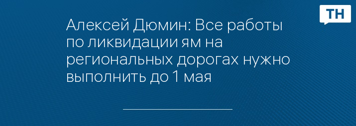 Алексей Дюмин: Все работы по ликвидации ям на региональных дорогах нужно выполнить до 1 мая