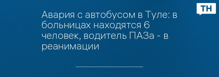Авария с автобусом в Туле: в больницах находятся 6 человек, водитель ПАЗа - в реанимации