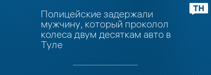 Полицейские задержали мужчину, который проколол колеса двум десяткам авто в Туле. Инцидент произошел утром 12 апреля на улице Хворостухина. По предварительным данным, злоумышленник проколол колеса двум десяткам авто.