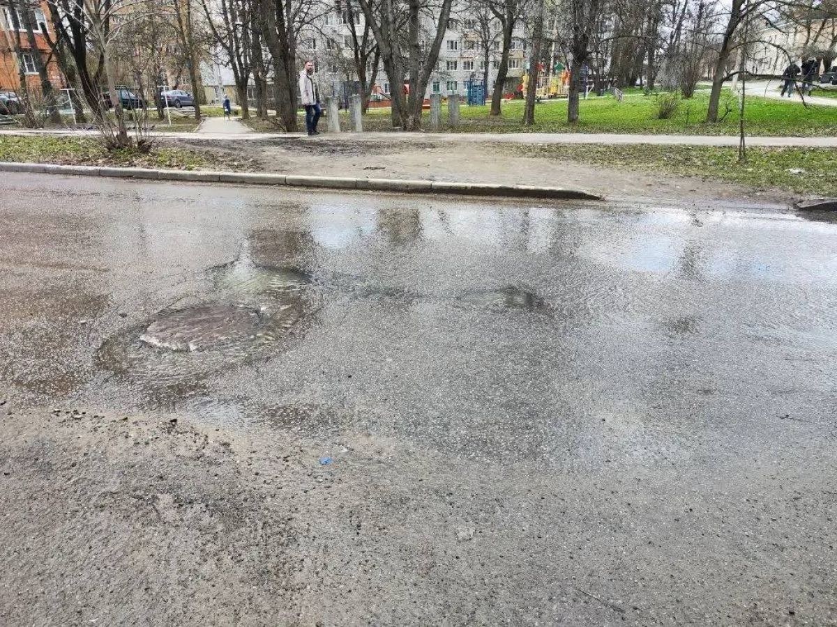 На улице Верхняя Краснослободская в Туле провалился асфальт