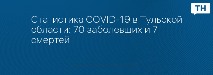 Статистика COVID-19 в Тульской области: 70 заболевших и 7 смертей
