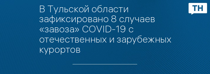 В Тульской области зафиксировано 8 случаев «завоза» COVID-19 с отечественных и зарубежных курортов