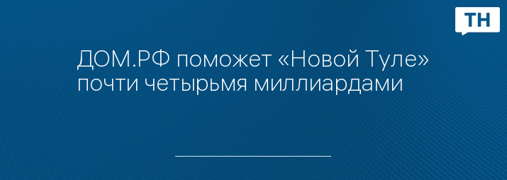 ДОМ.РФ поможет «Новой Туле» почти четырьмя миллиардами