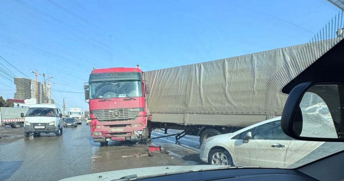 На Новомосковском шоссе в Туле авария большегруза и Peugeot перекрыла движение