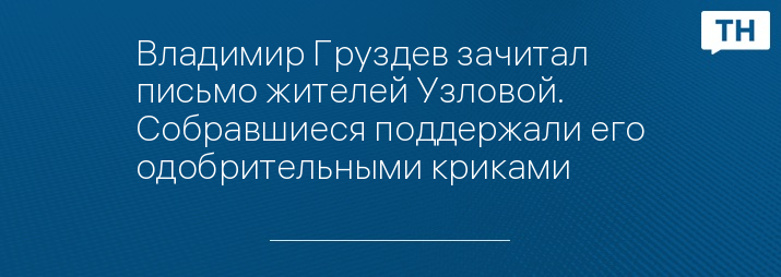 Глава региона Владимир Груздев зачитал отрывок из письма жителей Узловой, которое сегодня утром пришло в редакцию ИА «Тульские новости».