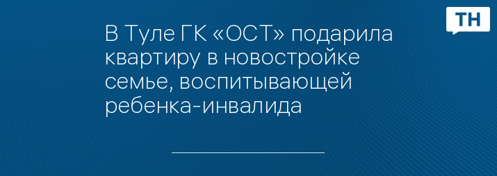 В Туле ГК «ОСТ» подарила квартиру в новостройке семье, воспитывающей ребенка-инвалида
