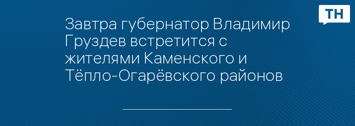 Завтра губернатор Владимир Груздев встретится с жителями Каменского и Тёпло-Огарёвского районов