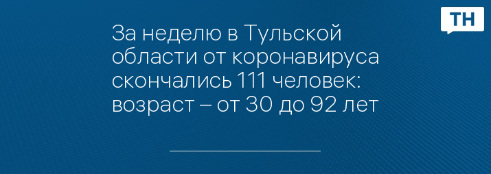 За неделю в Тульской области от коронавируса скончались 111 человек: возраст – от 30 до 92 лет
