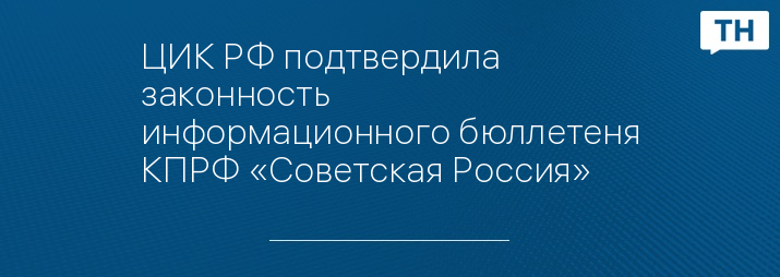 ЦИК РФ подтвердила законность информационного бюллетеня КПРФ «Советская Россия»