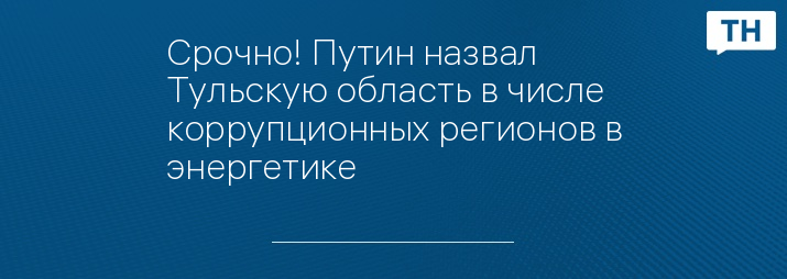 Срочно! Путин назвал Тульскую область в числе коррупционных регионов в энергетике