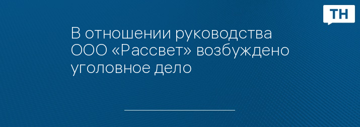 В отношении руководства ООО «Рассвет» возбуждено уголовное дело