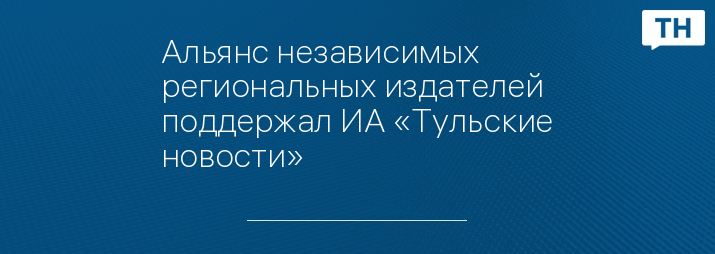 Альянс независимых региональных издателей поддержал ИА «Тульские новости»