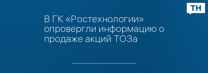 В ГК «Ростехнологии» опровергли информацию о продаже акций ТОЗа