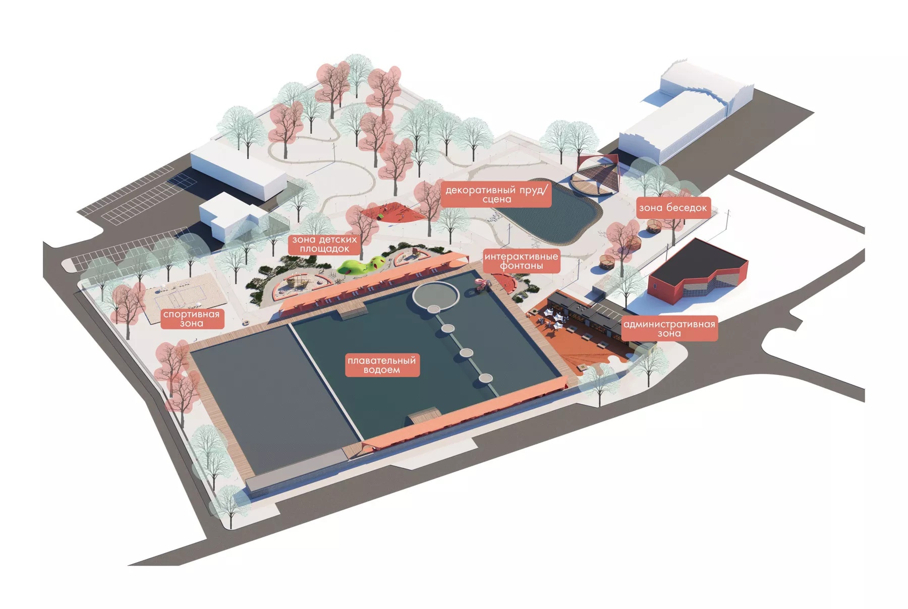 Проект подразумевает благоустройство территории и реконструкцию бассейна с использованием передовых технологий и новейшего оборудования.