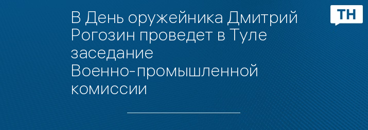 Вице-премьер РФ Дмитрий Рогозин в своем блоге в твиттере написал: «Скоро буду в Туле - в День оружейника планируем провести выездное заседание Военно-промышленной комиссии».