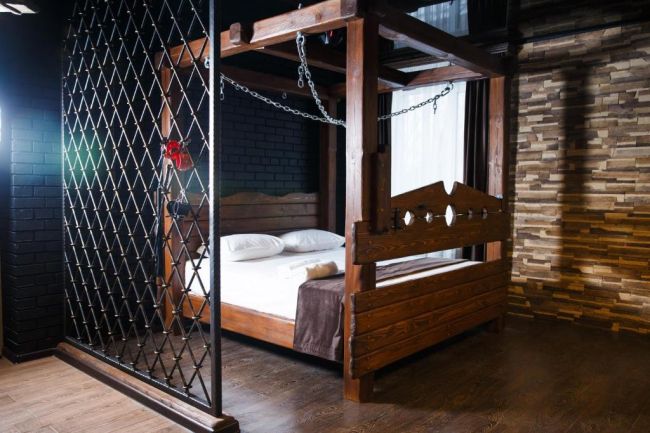 Под «тематическими номерами» понимаются комнаты для различных любовных утех. Судя по фото с сайтов бронирования гостиниц, речь идет, например, о БДСМ. Там же в гостинице можно арендовать различные игрушки – от наручников и маски до эротических качелей и скамьи послушания. Имеется в наличии также гинекологическое кресло и дыба.